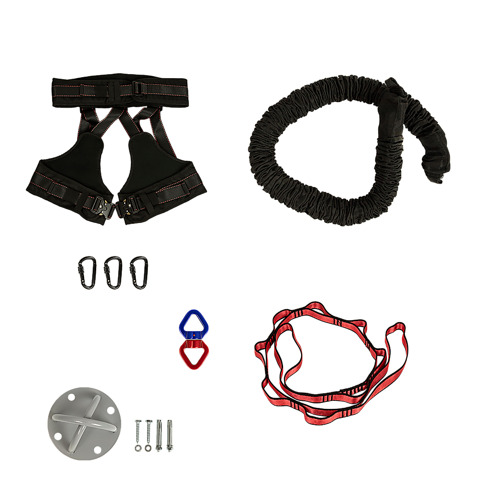 Add variation and interest to your workout with this easy-to-use Randy Travis Machinery Heavy Bungee Cord Resistance Belt. Users can perform exercises either fully suspended, or using the resistance belt to add difficulty to a full or partial weight-bearing exercise. Depending on how the belt is used, it can provide support when attempting more challenging exercises, or add resistance to add challenge to simple exercises.